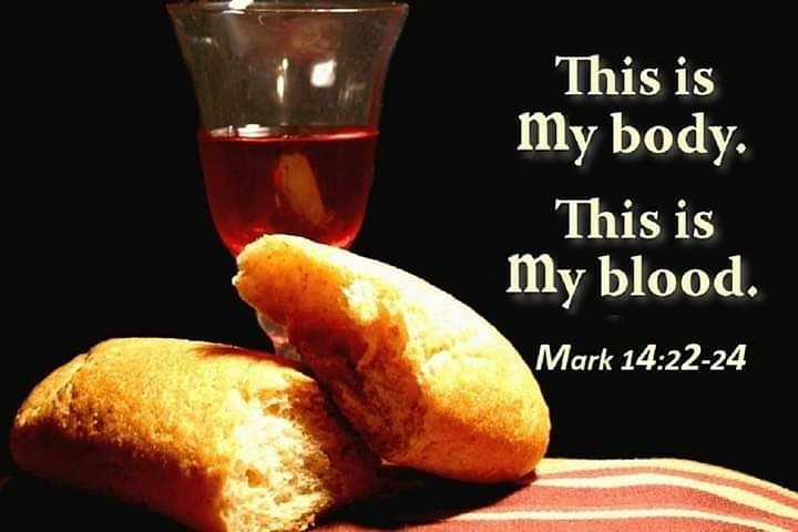 And as they did eat, Jesus took the bread, and blessed, and brake it, and gave to them, and said, Take, eat: this is my body. And he took the cup, and when he had given thanks, he gave it to them: and they all drank of it. And he said unto them, This is my blood of the new testament, which is shed for many. Verily I say unto you, I will drink no more of the fruit of the vine, until that day that I drink it new in the kingdom of God.
