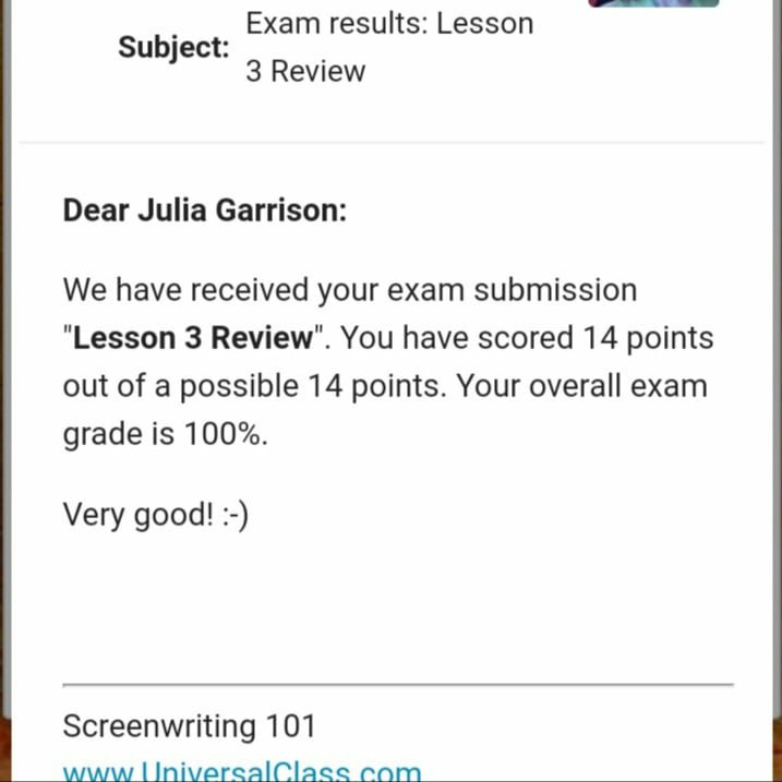 I’m bragging in the Lord Jesus Christ only, Amen! I received a 100% on my 3rd screenwriting exam. So far my overall sceenwriting grade remains at 100%. #JesusisLord #faith #writing #screenwriting #editing #roughdrafts #writerslife