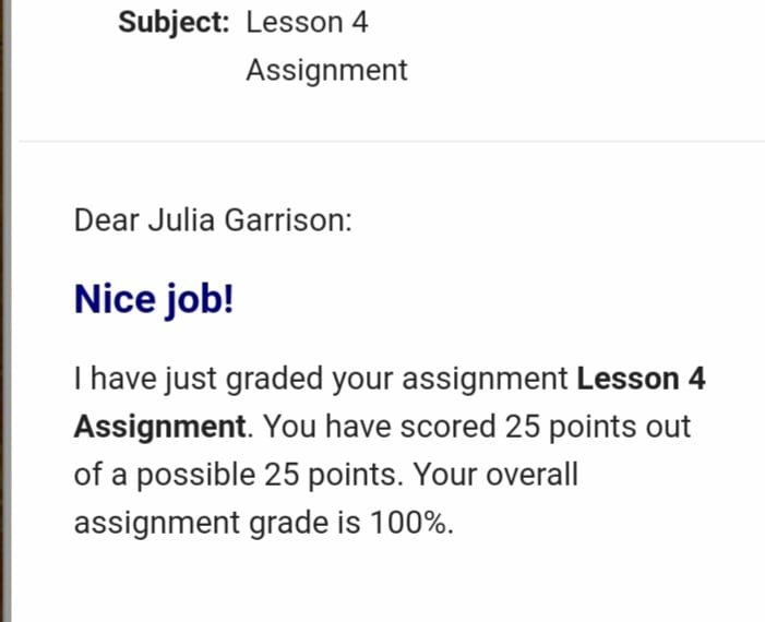 I’m Bragging In The Lord Jesus Christ Only: I am truly humbled in the Lord because my grade for my script page screenwriting assignment is 100%. This assignment was very difficult and the Lord gave me wisdom and understanding to complete it with His perfection. Colossians 3:23-24 KJV And whatsoever ye do, do it heartily, as to the Lord, and not unto men; Knowing that of the Lord ye shall receive the reward of the inheritance: for ye serve the Lord Christ.
