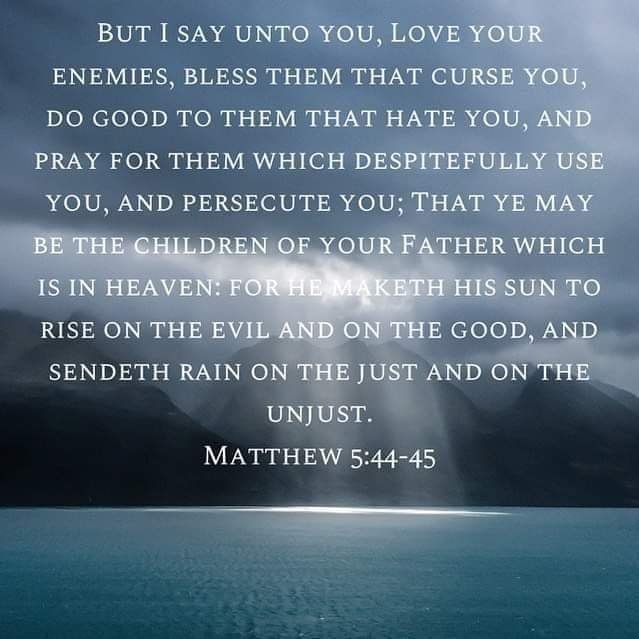 We need to remember to love and pray for our enemies just like we do for our family and friends. We aren’t supposed to tolerate or run with evildoers, but we are to love and pray for them. We need to share the Gospel of Christ Jesus so they might believe to be saved and repent of their ways.